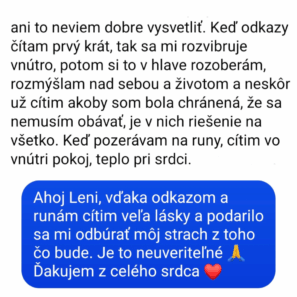 Tento program je praktický a priamy – žiadna teória, žiadne zbytočné omáčky. Dostaneš konkrétny návod ako si vytvoríš anjelské runy, odpovede na svoje životné otázky a pocítiš teplo a pokoj na duši.